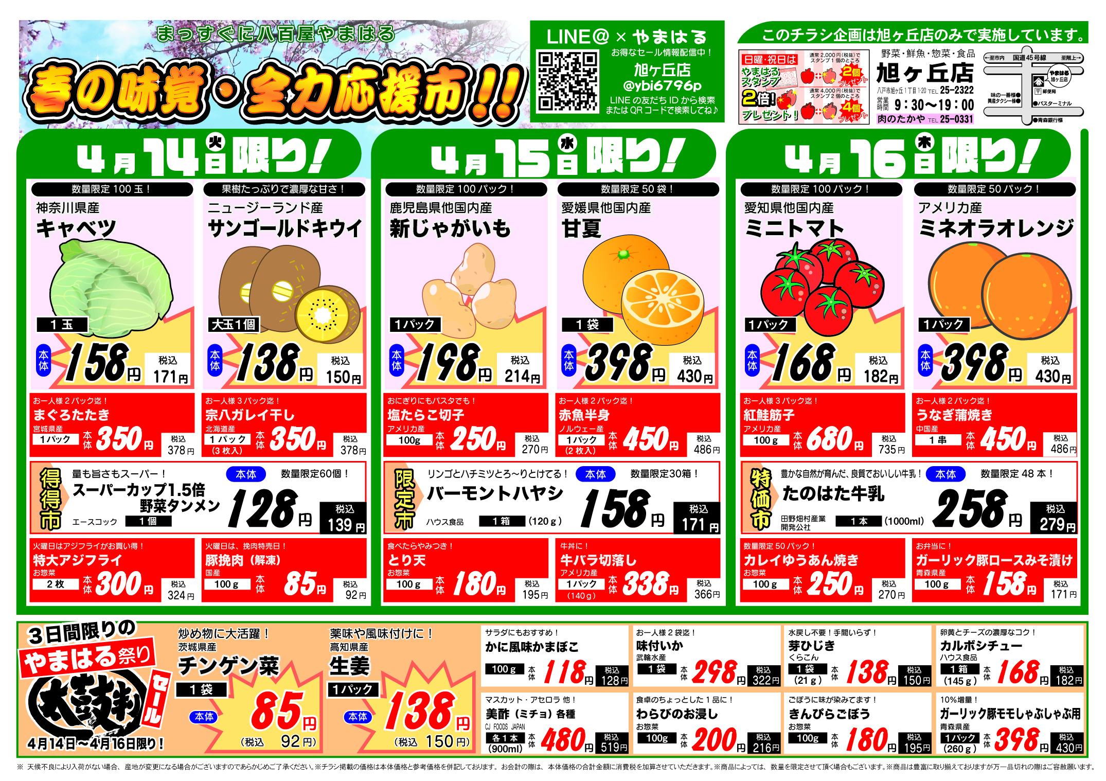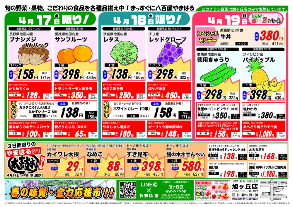 今週のチラシ(4/14~4/19)やまはる 旭ヶ丘店
