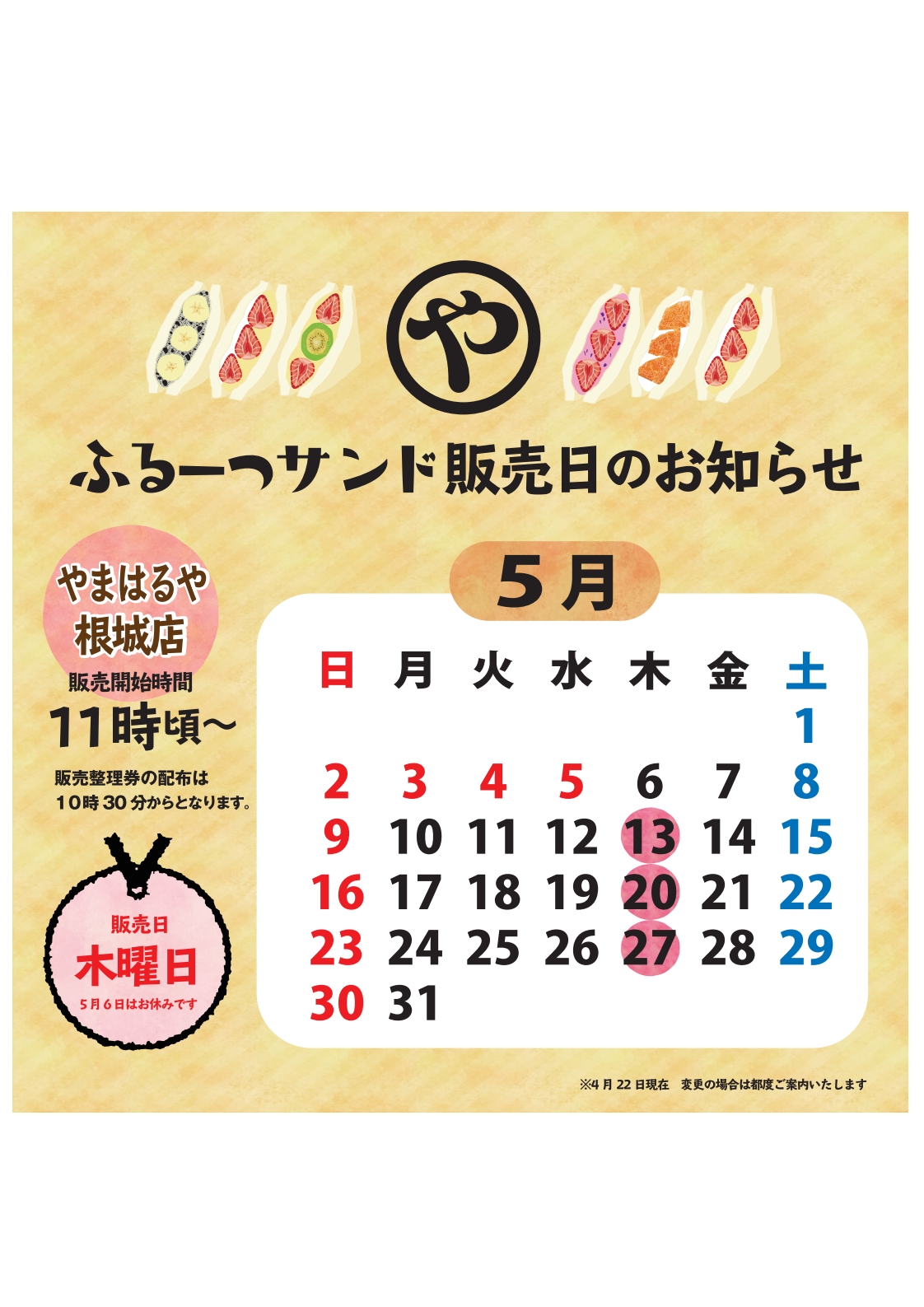 【2021年5月】ふるーつサンド販売日のお知らせ