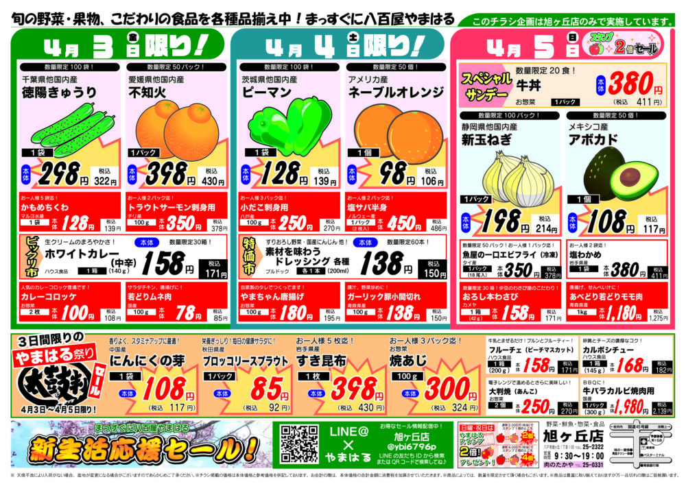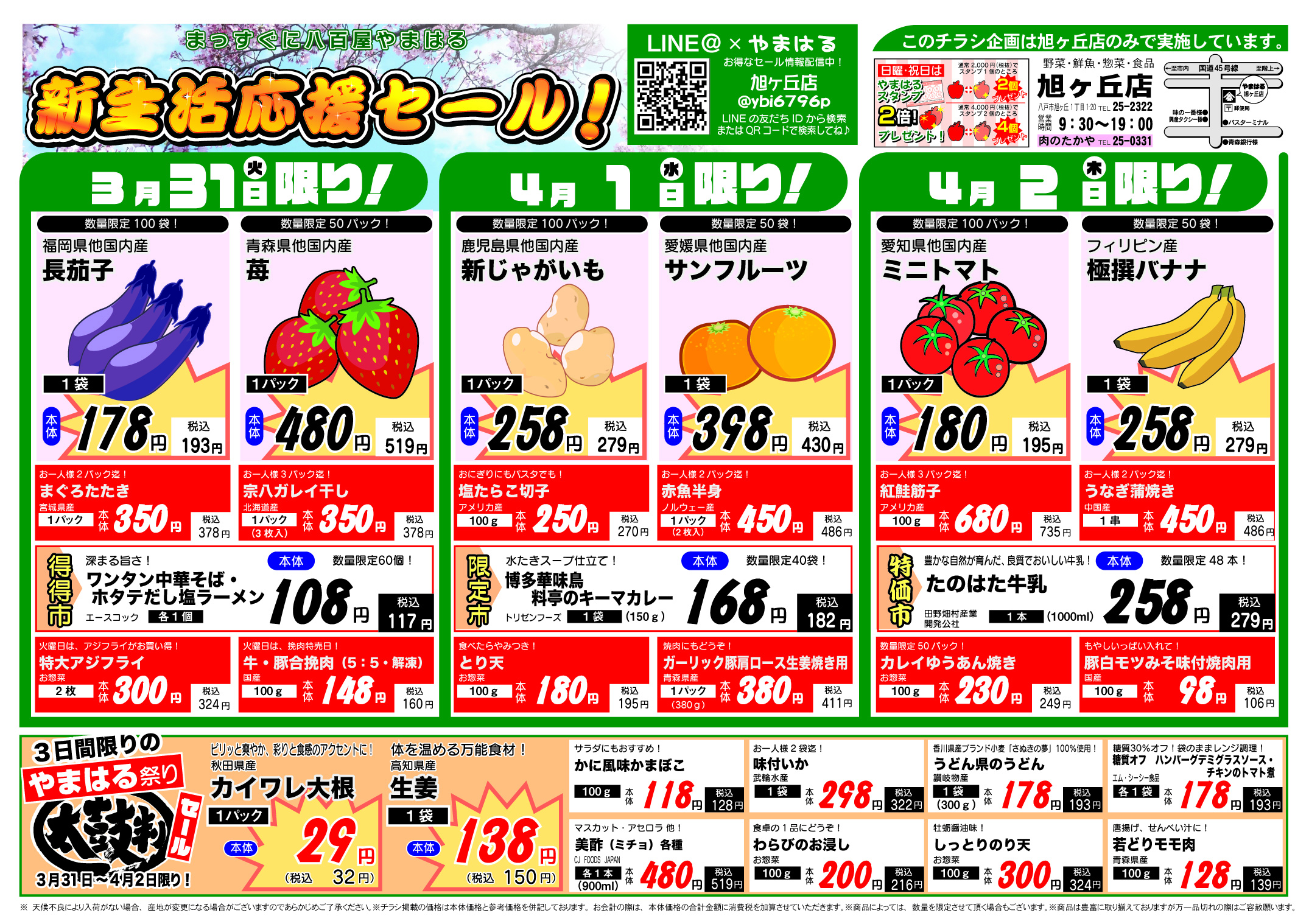 今週のチラシ(3/31~4/5)やまはる 旭ヶ丘店