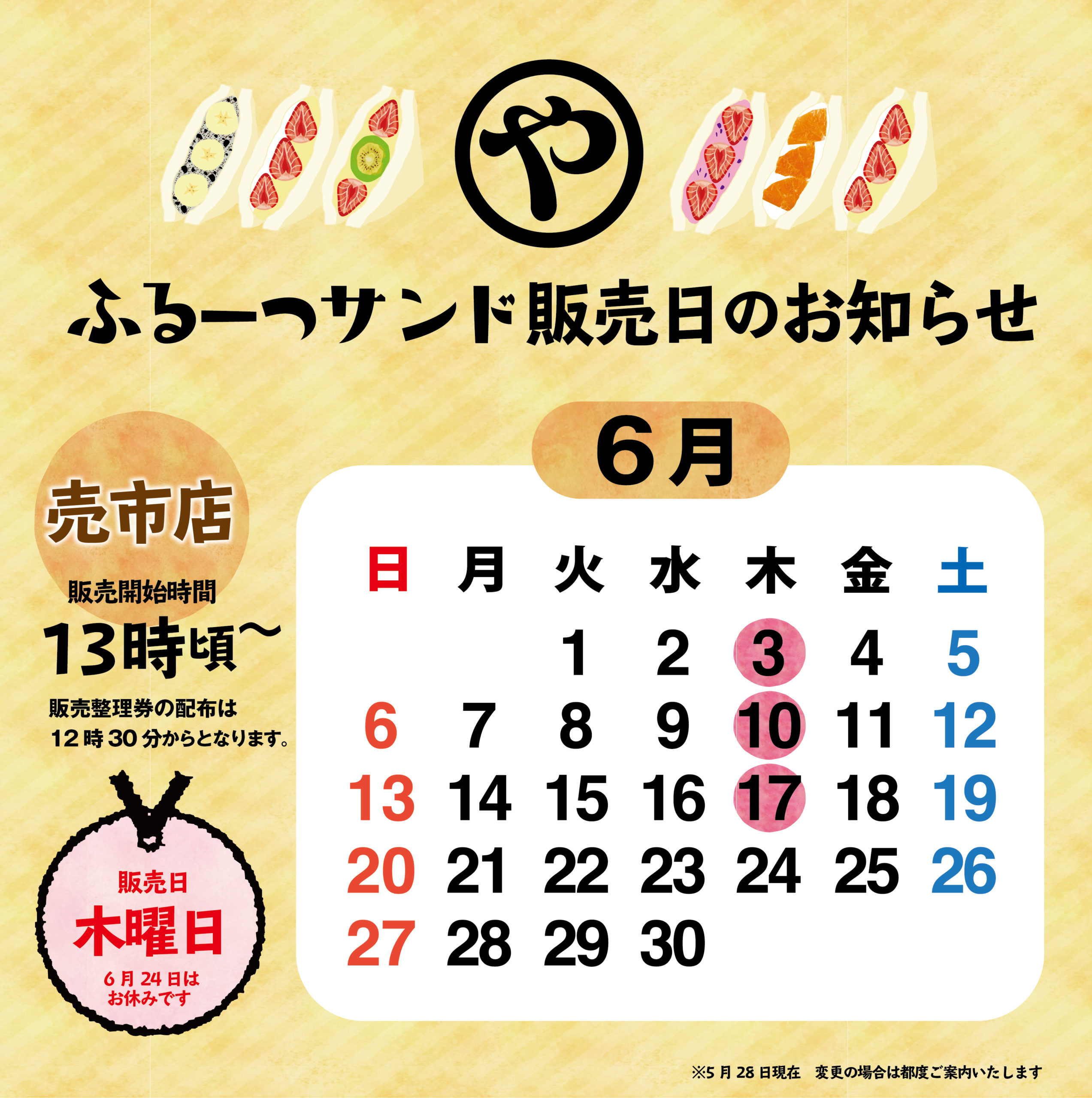 【2021年6月】ふるーつサンド販売日のお知らせ