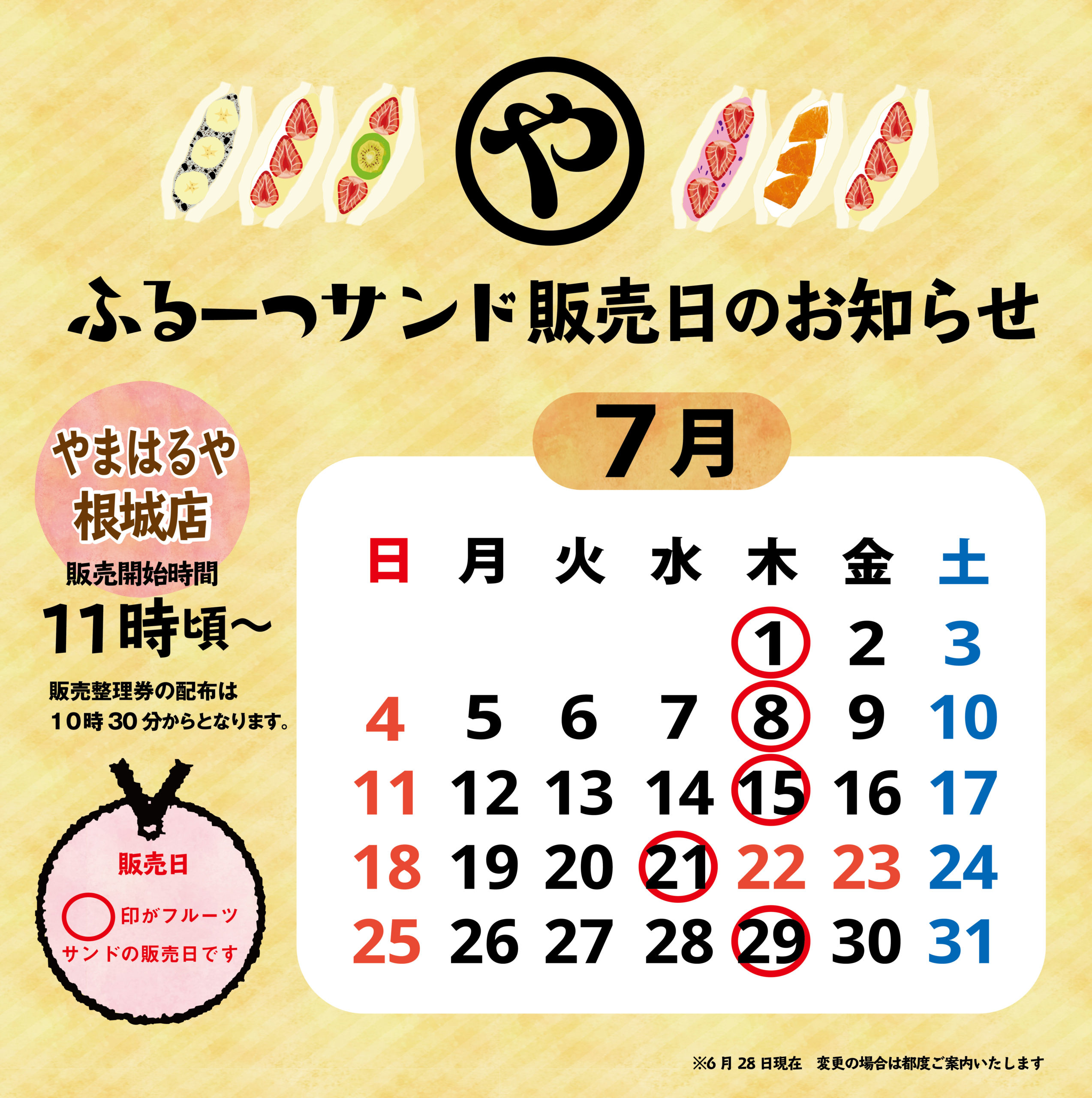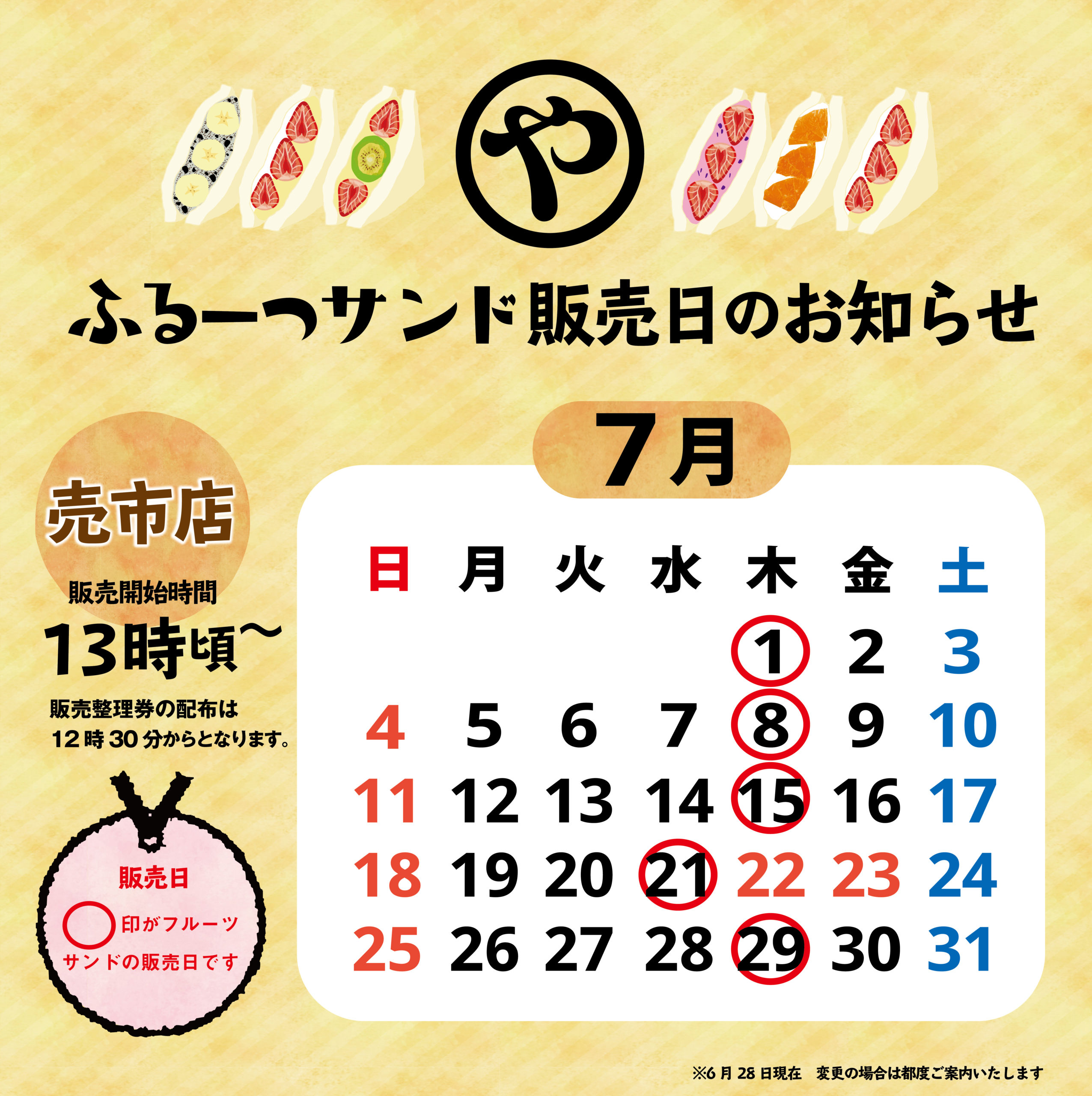 【2021年7月】ふるーつサンド販売日のお知らせ